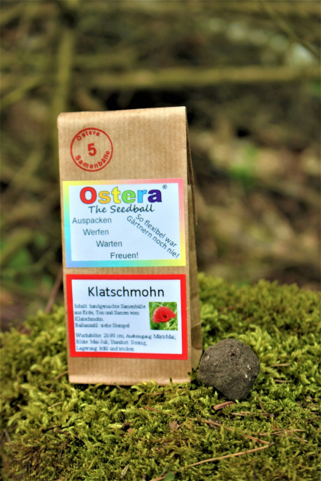 Einmal ausgebracht ist die samenfeste Pflanze (Samen treiben wieder aus) angekommen. Per Seedball ist das Ausbringen ganz einfach - auch über eine größere Entfernung.In einer Packung befinden sich 5 einsatzbereite Seedballs - ich habe die notwendige Kälteperiode im Kühlschrank simuliert - Klatschmohn ist ein Kaltkeimer.