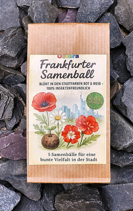 Der Frankfurter Samenball ist eine speziell zusammengestellte Blumenmischung im praktischen Seedball-Format für urbane Flächen. Blüht in Rot & Weiß – passend zu den Stadtfarben.